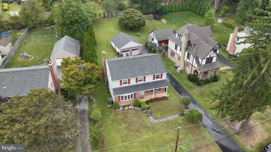 Welcome to 719 Pine Ridge Rd, nestled in the sought-after Pine Ridge neighborhood of Nether Providence Township and within the award-winning Wallingford-Swarthmore School District. Step onto the charming covered front porch and into the light-filled formal living and dining rooms with beautiful hardwood floors. The hardwood continues into the spacious main floor family room, which features a cozy wood-burning stove, a powder room, and access to a screened-in porch overlooking the expansive backyard. The large eat-in kitchen has been updated with luxury vinyl flooring and new countertops, and includes an outside exit for added convenience. Upstairs, the large primary bedroom features hardwood floors, large closets, and an ensuite bath. Three additional bedrooms, all with hardwood floors, and a full hall bath complete the second floor. The finished basement provides flexible space for a home office, playroom, or additional family room and includes a full bath, laundry area, and walk-out access to the backyard. A detached two-car garage with loft storage adds even more functionality, and the backyard is both beautiful and spacious. 719 Pine Ridge is located 1.5 miles from downtown Media Borough and steps from Smedley Park, with direct trail access to the park from the neighborhood and easy connections to the SEPTA trolley, Routes 476 and 95, and the Wawa SEPTA Regional Rail station.