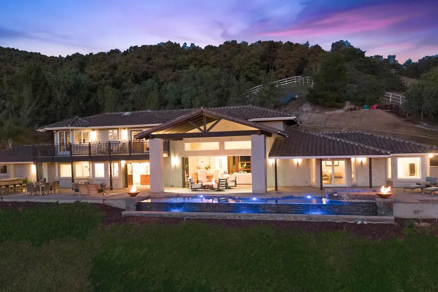 Architecturally spectacular jewel! In 2017, this equestrian estate was completely re-imagined and re-built into a contemporary masterpiece with sweeping panoramic views, solar power and smart home system. Heated infinity edge pool and spa, large outdoor entertaining areas, built in fire table and bowls along with a well-equipped outdoor kitchen that all overlooks the 2.5 acre fenced site including a 4 stall barn with in and outs, round pen, tack and feed rooms and large turnout. Includes access to the wonderful Saratoga Estates trails and gated community amenities. Incredible Quality Throughout! Panorama Doors slide, stack or swing, opening the 30 ft of glass wall. Hidden screens. French Oak flooring. Custom African Mahogany pivot front door and cabinets. Chefs Kitchen Details: 2 Miele dishwashers, Wolf Induction cooktop, steam and conventional ovens, Subzero 48 PRO glass front door refrigerator/freezer, all custom cabinets with built-in organizational systems, double island, Sea Pearl quartzite counters, Kallista sinks, Newport brass hardware and separate Butler's pantry. Master Bath: Classic Marble countertop. Downstairs Bath: Shower wall is an unforgettable Alex Turco panel handmade in Italy, Sink is a solid piece of classic marble. Laundry Room: Quartzite countertops, automatic dog water system and custom cabinetry. Exterior: Salt water Pool & Spa. Two BBQ Grills including a Santa Maria Open Fire Grill and large piped propane grill. Easy maintenance landscaping includes smart wifi controlled drip irrigation, personal citrus grove and room to add gardens if desired.