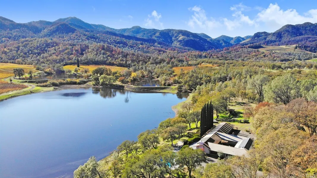Setting, Privacy, and Potential! As you enter through a sea of vines, down a winding rock drive, the far-reaching views of the neighboring vineyards, terraced hillsides and tree lined ridges provide a picture-perfect back drop for this lakeside setting. Gently elevated above Duvall Lake, this expansive 7 bedroom, 4 bath mid century retreat offers a serene venue whether relaxing poolside, sunning on the various decks or lounging under the canopy of old growth oaks contemplating what the next chapter brings. With 10 plus acres, a 6,300+/-sq ft home, detached garage/barn, holding tank and filtration system, the infrastructure is in place, now bring your dreams, friends, and family and of course, your swimsuit!