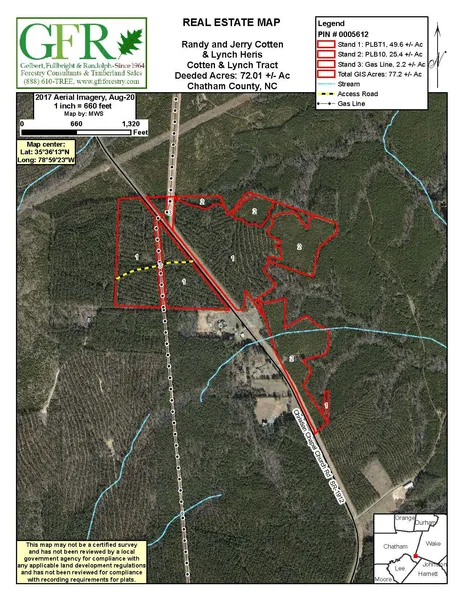 Tons of road frontage on either side of Christian Chapel Church Rd. in Chatham County, NC. Enjoy easy access from Raleigh, Durham and Sanford for potential home sites or recreational opportunities. Adjoins NCWRC Harris Game Lands.