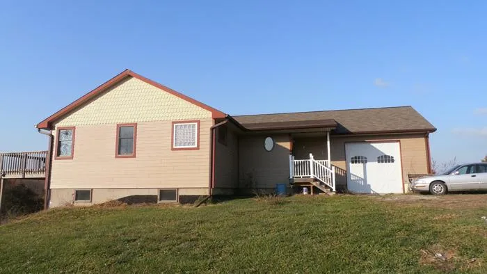Fabulous custom built home with an open floor plan overlooking a 4 acre lake. There are 2 bedrooms and 2.5 baths. The full basement is framed in but not finished, with 2 more bedrooms possible. Of the 73 acres, there are 27 CRP, 25 pasture and 20 timber with 2 ponds. Gentry Co., $315,000