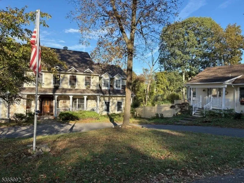 Welcome to Dapple Grey Close, located on one of Tewksbury Township's most picturesque roads, yet only 10 min to I78 and commuter rail, convenient to restaurants, shopping and the state's finest schools. Drive up the paved driveway, past the fenced riding ring to end at circular drive in front of the main house and stable. Relax on the covered front porch enjoying the stars on a summer's night or the changing colors of the fall leaves. If you like to entertain, you will love this house. From the foyer, to your right is a formal dining room and to your left is the front parlor with a vaulted ceiling and skylights. The great room has a wood-burning stone fireplace and wet bar. The heart of the home is the kitchen, with a center island/bar, eat-in kitchen, extra height cabinets, and walk out sliding doors to the deck. The laundry room has a deep sink and cabinets. Upstairs is the MBR suite with vaulted ceilings and skylights. The MBa has a jetted soaking tub, shower, double sink vanity and bidet. The attached sitting room has a woodburning fireplace and balcony. There are two walk-in closets. 3 additional br are on the 2nd floor. In the basement is a finished room and a sliding glass doors to walk out to the back yard. You won't believe that the charming cottage next door is actually a horse barn, with two stalls and a tack room below and place to store your hay and tractor above. The barn is electrified with hot and cold running water and a heated tack room.