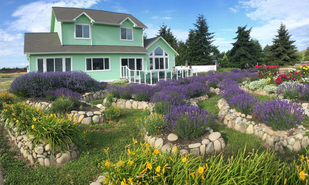 Tucked back on a quiet street this 2-story traditional home offers masterful landscaping that showcases stunning hydrangeas, lush perennials, dahlias, peonies, a heart-shaped rose garden and numerous lavender plants. Superb mountain views can be seen from nearly every room in the house. The living room offers vaulted ceilings, large windows and a cozy propane fireplace. The Chef's kitchen features custom cabinets with pull-out shelving, granite countertops and a center island with a built-in bookcase for your cookbooks. The adjacent dining room and expansive patio make entertaining family and friends a breeze. The main floor primary bedroom suite offers a spa-like bathroom with a soaking tub, dual sinks, ceramic tile flooring, a shower, separate toilet area and a large walk-in closet. The 2 bedrooms upstairs include walk-in closets and share a full bath. Self-reliance is easy here in the sunny flat yard with room for your veggie garden. There is also a pasture, a garden shed and a shop with parking for your RV or boat. Serene and private, yet only minutes to shopping, medical services and recreational pursuits.