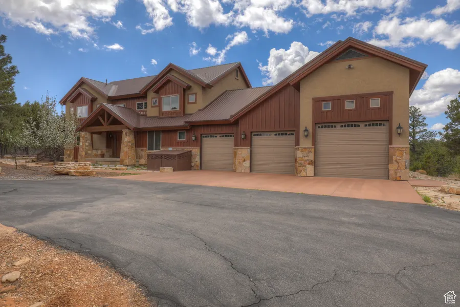 Welcome to your dream home in the exclusive Zion Ridge gated community! This exceptional custom-built residence, nestled on 1.16 acres of heavily treed land, offers unparalleled privacy and seclusion while being just 25 minutes from the east entrance of Zion National Park and 20 minutes from the upcoming Zion Visitors Center. With direct access to the east rim trail and adjacent to the Ponderosa Ranch Resort, outdoor enthusiasts will find this location unbeatable. Key Features: Prime Location: Enjoy proximity to East Zion hiking trails and the Ponderosa Ranch Resort. Spacious Living: 4 bedrooms, 2 full baths, 1 three-quarter bath, and 1 half bath spread across 3,450 sq ft. Impeccable Design: Beautifully maintained with hardwood floors, large windows, and a wood fireplace. Gourmet Kitchen: Wolf range, stainless appliances, stunning cabinetry, granite countertops, and a large granite island perfect for entertaining. Luxurious Amenities: Fully furnished and turn-key vacation rental, complete with a large laundry room and ample storage. Outdoor Bliss: Expansive back deck featuring a new hot tub and outdoor dining area, ideal for relaxing and entertaining. Private Retreat: Upstairs bedrooms with private balconies for serene mornings and tranquil evenings. Functional Spaces: 3-car garage with built-in shop and storage in the RV garage space. Durable and Stylish: Metal roof, Trex decking, and stone accents ensure both beauty and durability. New dual HVAC system installed 2023. This property offers a perfect blend of luxury, comfort, and convenience, making it an ideal primary residence, vacation home, or investment property. Experience the best of Zion living with this magnificent home. Contact us today to schedule a private showing and make this stunning property yours! Buyer to verify all.