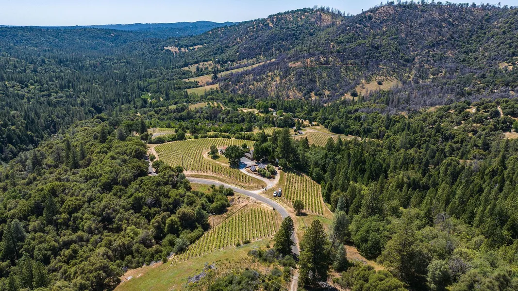 Welcome to country living at it's finest! This 40 acre property features a 2,460 sq ft Craftsman style residence with panoramic vistas, Seller owned solar power system connected to the PG&E grid, detached guest quarters, substantial outdoor living and entertaining space, year-round Butte Creek, and an 8.7 acre Certified California Sustainable vineyard. The Vineyard has 12 acres of deer fencing on the perimeter and produces exceptional quality fruit sold to premium wineries in various regions. Enter the grand entrance into the immaculate, luxurious Craftsman style home that features soaring, vaulted open beams ceilings, an updated kitchen in a great room area that includes the living room and formal dining area, and a magnificent Master bedroom. The sky deck accessed from both upstairs bedrooms offers spectacular views. The 1 bed, 1 full bath guest quarters is adjacent to the detached garage with a large wine storage area below. The garage has a large art studio upstairs. The Generac 25KW generator provides backup power to both the home and well system. Two wells with large storage tanks service the residence and vineyard along with water supplied by EID's Crawford Ditch. There's also room for an ADU up to 1,600sq feet. See the attached list of property features and equipment!