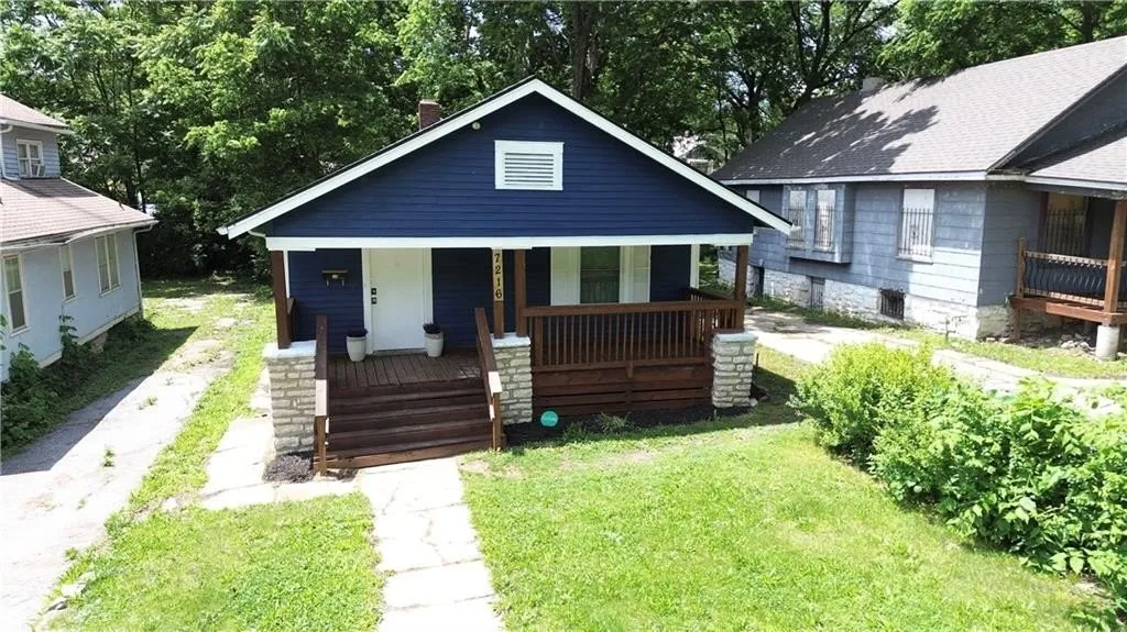 Check out this updated beautiful 2 bedroom / 1 bath home in Kansas City. Freshly painted exterior with a large front porch for entertaining and a new back deck for hosting fun summer gatherings and grilling out. This home is just a block away from Noble Park. The interior rooms were recently painted and have all hardwood floors. The kitchen features an open concept with exposed brick, butcher block countertops, marble herringbone tile backsplash, and white cabinets with a built in cutting board in one of the cabinets. Lots of countertop space and cabinet space for whipping up all your chef inspired dishes. There is a peninsula kitchen countertop with butcher block that can seat 2-3 bar stools. Just off the kitchen there is a new wood deck for adding space to entertain with a nice sized yard. The basement has freshly painted walls and floors with lots of new lighting making it a bright space.