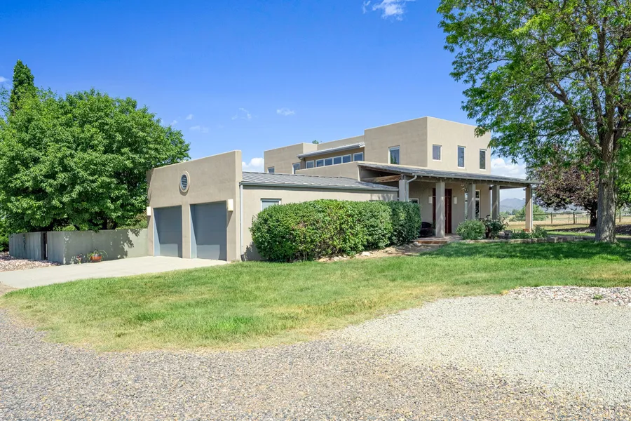Nestled at the end of a private drive, Coyote Ridge Farm offers a country living oasis featuring a 3 bed & 4 bath Southwestern Design house on 61.46 acres of picturesque land with water rights. The property includes 1.5 shares of James Ditch and 2 shares of Davidson Downing Ditch, allowing for ample water access. The property is protected by Boulder County Conservation easements to the north and private farmland to the west. Enjoy breathtaking mountain views from every corner of the property. The estate boasts an outdoor horse arena, a 3-stall horse barn constructed in 2014 which includes a convenient half bath, heated tack room, wash stall, automated waterers, outside pens, and an attached greenhouse. The main house is elegantly designed, with special features like tiled water fountains creating tranquil sounds, a gourmet kitchen equipped with cherry cabinets, granite countertops, and a Thermador cooktop. The spacious dining room offers picturesque views, while the property showcases multiple large stone patios, a hot tub, and custom-designed gates. The large primary bedroom is complete with a double-sided fireplace, spacious walk-in closet and deck offering stunning mountain views. Additionally, there is a decommissioned ADU structure on the premises that has the potential to be reinstated, adding versatility to the property. Experience the charm of country living with the convenience of being close to town at Coyote Ridge Farm. By Appointment Only - Gated entry, no access or turn around.