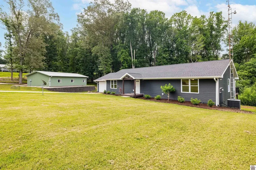 Here's a beautifully renovated home in one of Cadiz s most desirable Lake Barkley communities, where year-round waterviews meet modern comfort and versatility. This turn-key gem allows STR's(ex. AirBnb), making it convenient for a full-time residence, vacation retreat, or income property. And to make things even sweeter... a dedicated community slip is just around the corner, providing easy boat parking. No detail was overlooked in the full renovation: new windows, flooring, electrical, plumbing, roof, siding, gutters, and a stunning new kitchen with quartz countertops. The spacious main-floor primary suite features a luxurious bath and walk-in closet. The basement offers a generous living area, a bonus room that serves as a 4th bedroom, and it's already plumbed for a bar. Outside, enjoy an attached garage plus a detached 2-car garage with roughed-in plumbing and a framed-up bathroom ready to finish and great for lake toys or even a future workshop. Perfection for all lake enthusiasts!
