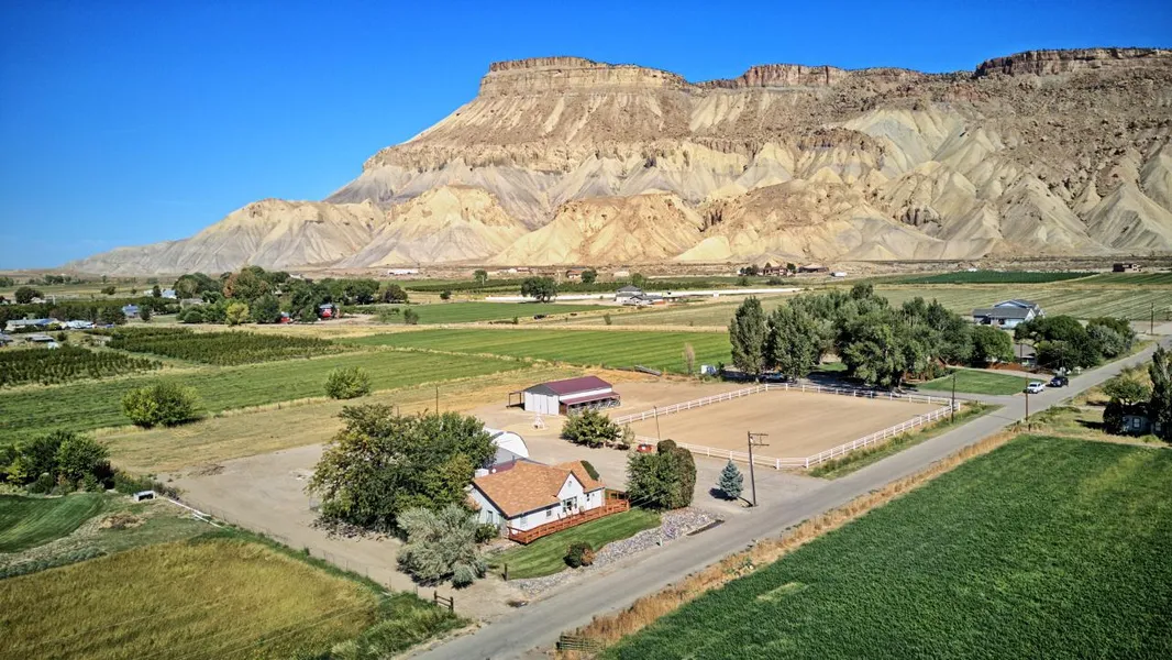 -Fenced yard with mature shade trees and covered patio. Four homestead acre shares of water