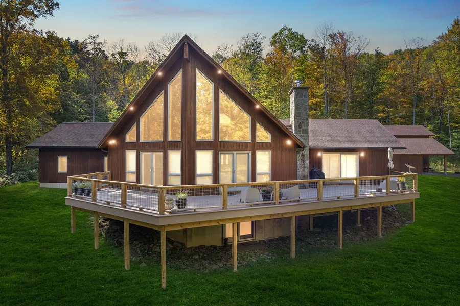 If you are looking for a well maintained, unparalleled featured property with privacy close to many activities this is an excellent opportunity, and impossible to build for this price. Retreat to this beautiful solidly built A Frame home with 65 acres in the Finger Lakes Region, famous for it's wineries and craft breweries. Located minutes from the Watkins Glen Racetrack and Watkins Glen State Park, you will enjoy year-round serenity. If it's dining and retail therapy you desire, you are just minutes away from Horseheads with a multitude of shopping and eatery opportunities. The Elmira/Corning Regional Airport is 20 minutes away to take you to NYC or many other destinations. This three to four bedroom/three and one half bath residence is mostly furnished with unique and characteristic pieces creating an incomparable experience that you must own. (Additional sqft in finished basement included via seller.)