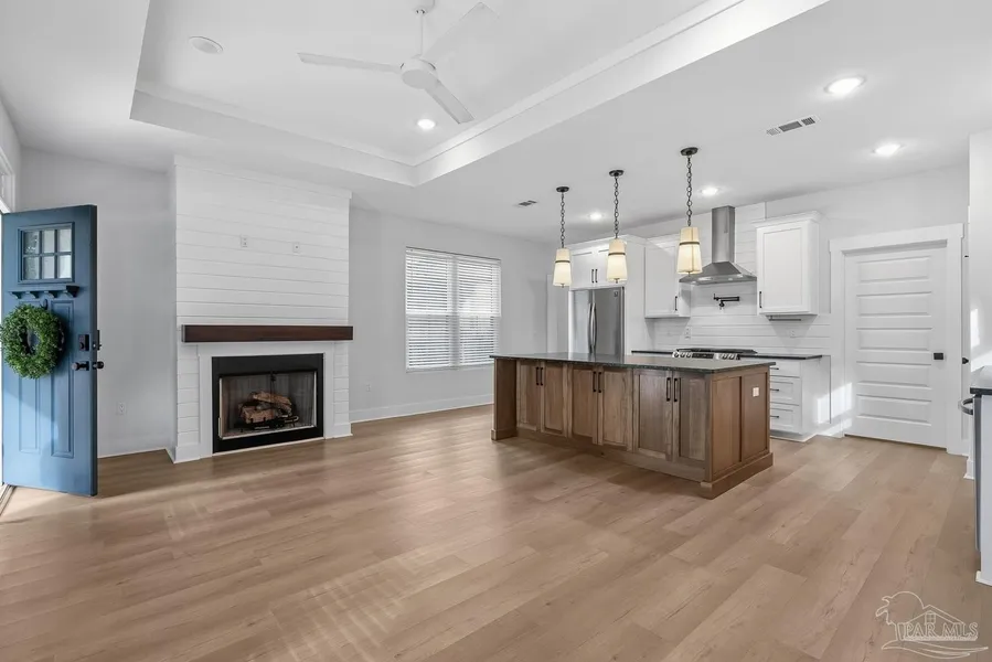 Pristine 2022 construction and priced to sell, This 3-bedroom, 2-bath shotgun-style home is perfectly tucked between North Hill and Downtown Pensacola. This versatile property is ideal as an investment opportunity, primary residence, or first-time home for those seeking easy access to everything Pensacola has to offer. Step inside to a warm and welcoming living space highlighted by a cozy fireplace—perfect for cool winter evenings. The open-concept kitchen features quartz countertops, custom cabinetry, high-end stainless steel Samsung appliances, and stylish designer lighting. Luxury plank vinyl flooring flows throughout the home, complemented by storm impact–resistant windows for peace of mind. The contemporary layout is ideal for entertaining, with thoughtfully chosen finishes that create a cohesive and modern aesthetic. Enjoy the convenience of walking or biking to some of the city’s most beloved attractions, including Blue Wahoos Stadium, Ever’man Cooperative, the Seville Historic District, and the vibrant nightlife of downtown. Plus, you’re just minutes from the sugar-white sands of Pensacola Beach. The living space opens to an inviting lanai and a covered patio overlooking a privacy-fenced backyard—perfect for gatherings, grilling, or simply relaxing outdoors. With exceptional craftsmanship and attention to detail throughout, this immaculate home truly must be seen to be appreciated. Schedule your showing today.