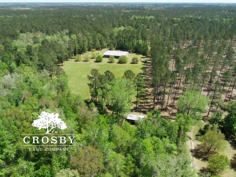 The 725 +/- acres consist of a mixed forest type and soils with an above-average percentage of uplands for the coastal plain. The property offers nine well-established food plots, an 18-acre dove field, two stocked fish ponds, an excellent road system, two custom built steel sheds, and one open bay shed. The main building contains a 7,000+/- square feet enclosed steel shed on a concrete slab, of which 2,200 square feet is a finished living space complete with 3 bedrooms, 2 baths, and a kitchen. In addition, there are over 2,000 square feet of enclosed shop/storage area with 3 large roll-up bay doors. The second steel building is roughly 2000 square feet, the main section is fully enclosed and on a concrete slab with two attached open bays for equipment storage.