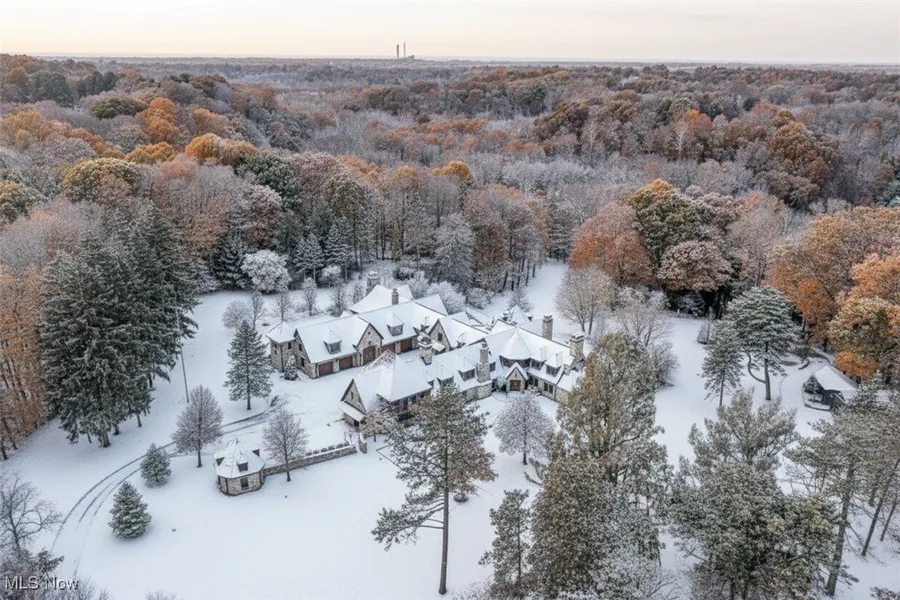 Once in a lifetime opportunity to own a fairytale castle with your own, private ski slope! Situated on over 14 acres overlooking the Chagrin River Valley, this exceptional chalet provides the epitome of distinguished living in an unmatched natural setting. Originally designed by Tony Paskevich, this magnificent manse is an architectural triumph with astonishing details and over 12,000 square feet of living space. The property is complete with every possible amenity catering to every possible desire, from a two-lane professional bowling alley to a private ski slope wired for your own chair lift. Beautifully set back from the road by a gated drive, the front entrance is evocative of a romantic fairy tale. A cobblestone paved porte cochere and motor court wrap the property and provide multiple points of entry into the main residence. The front door beckons with stained glass accent windows and opens to the dramatic great room and kitchen. Two stone fireplaces and large windows frame both spaces. The entertaining wing includes a spectacular vaulted game room which opens to the two-lane bowling alley and lounge with a full kitchen. Step out to the multi-level stone terrace to enjoy multiple outdoor fireplaces, full court basketball court, or the exceptional serenity of the beautifully wooded setting. Six bedroom suites can be found on the second floor, including an exceptional owner's suite. The 5 car tiled garage is heated with custom 10' solid chestnut doors and a complete guest apartment upstairs. This estate is truly a trophy property for the most discerning buyer.