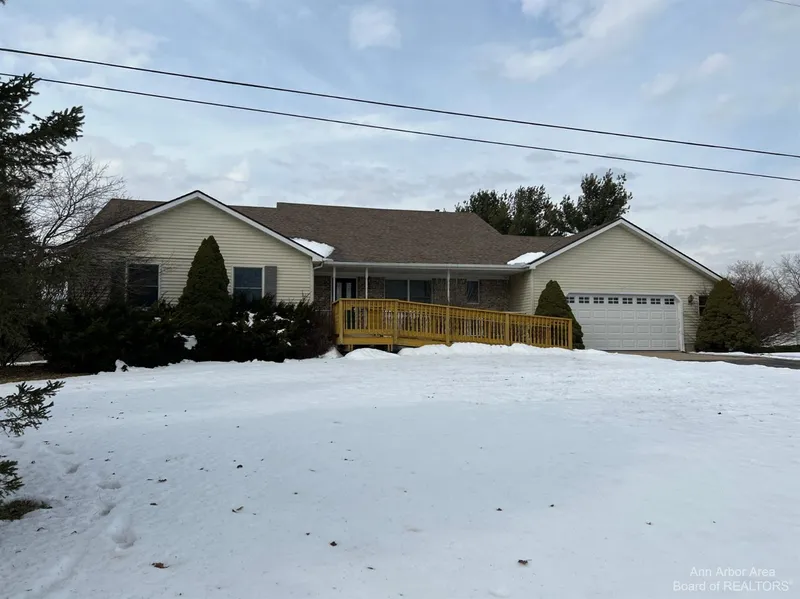 Open floor plan 3 bedroom ranch with gas fireplace in great room that leads to the deck overlooking large back yard. Master suite with jetted tub and separate shower. Full walkout basement. Oversized 2 car attached garage. Over 1 acre lot! Country living not far from shopping and expressways. Price reflects need of cosmetic updates.