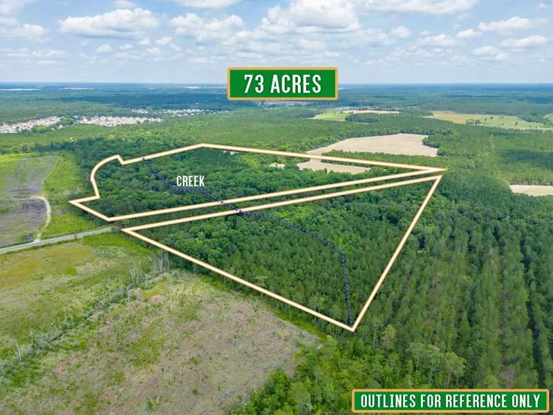 Nestled in the picturesque landscapes of Bryan County, Georgia, this stunning 73-acre property offers a unique blend of natural beauty and investment potential. As you explore the sprawling grounds, you'll be captivated by the sight of large timber trees standing tall and proud, creating a majestic canopy overhead. The property is dotted with majestic live oak trees, adding a touch of Southern charm and character to the surroundings.