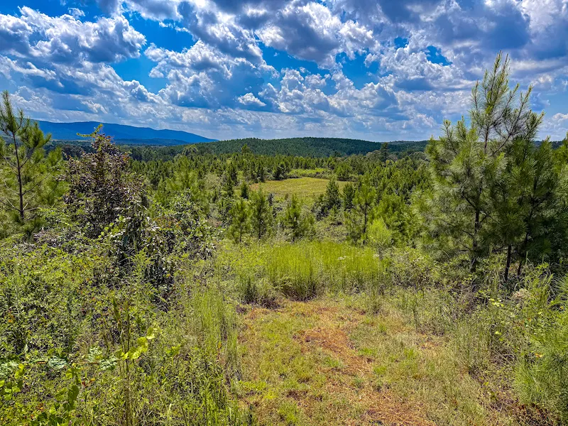 This 73-acre tract in Calhoun County, Alabama, offers a combination of recreational and investment potential. The property is located along Old Piedmont Gadsden Highway with approximately 1,110 feet of paved road frontage, providing convenient access. The terrain features ridgetops that give way to long range views of the surrounding mountains, making it both scenic and functional for multiple uses. The land is largely covered by a stand of planted pines that are approximately six years old and showing healthy growth. This timber stand not only represents an investment opportunity but also contributes to the overall habitat value of the property. The young pines, along with natural browse and cover, provide excellent conditions for supporting wildlife. While walking the property, the sound of quail whistling could be heard, and the habitat is excellent for deer and other game species. A well-maintained trail system runs throughout the acreage, allowing easy access by foot or ATV to various parts of the property. Established food plots add to the usability of the land for hunting and wildlife observation. With utilities available nearby, there is also potential for future development of a cabin or hunting camp if desired. Beyond the property itself, recreational opportunities in the surrounding region are abundant. Talladega National Forest is within a reasonable distance, offering thousands of acres for hiking, hunting, and exploration. Weiss Lake, also nearby, is well known for fishing and boating. Together, these resources create a diverse set of options for outdoor activities both on and off the property. Overall, this Calhoun County property combines young pine timber with established wildlife habitat, recreational access, and future investment potential. Its road frontage, utilities nearby, and access to surrounding outdoor resources make it a tract well suited for a variety of uses. Give me a call today for more details.