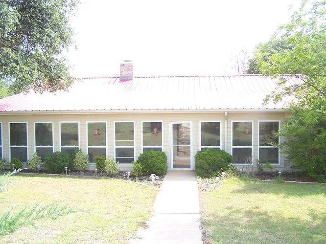 Beautiful home on great 73 acre tract---this 4 bedroom 2 bath home has "Welcome Home" written all over it---beautiful cathedral ceilings are what you first notice as you walk into the spacious living area. Then the eye is drawn to the knotty pine walls that embrace a built-in gun cabinet, curio cabinet, and bookshelves--this room is perfect for family gatherings and the Holidays! The split bedrooms arrangement creates a great private masterbedroom suite and the other two bedrooms have a Jack and Jill bathroom setup-perfect for company or kids. There is a room off of the living room that can be a fourth bedroom or in-home office--whatever you need. The kitchen is very sunny place due to all of the windows and access to the patio makes for great outdoor bar-b-ques! Satillo tile is throughout the home and the utility area off of the klitchen is large and has lots of cabinet storage. This home also boasts a window-lined sunporch---I can feel those south breezes now!!! The main home has a metal roof and there is a detached building from the home that could be a man-cave or mother-in-law space but does need some work. This also has a metal roof.