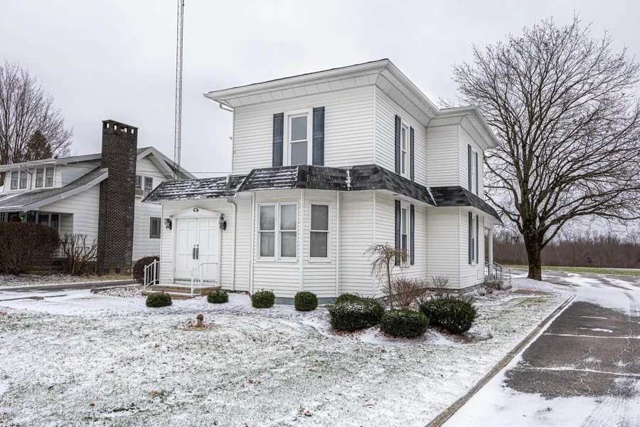Located at 73 W Walnut St in Marengo, Ohio, this highly versatile commercial property offers exceptional accessibility, ample parking, and a wide range of potential uses. Situated just 2 miles from the I-71 interchange at St Rt 61, the location provides outstanding convenience for businesses and clientele alike. The property sits on one full acre and features an impressive 14,500 square feet of paved parking, complete with separate entrance and exit drives--ideal for high traffic operations, customer flow, or even drive-through possibilities. Additional green space offers room for expansion or future development. The 2492 square feet building is handicap accessible with multiple entrances, and has seen numerous recent updates, including new furnace and central air, new natural gas line, fiber optic internet service, and new flooring and fresh paint throughout much of the first floor. The main level is well suited for office or business use, featuring two bathrooms, a kitchenette area, and dividers for flexible room configurations. The upper level, while in need of TLC, offers generous room sizes and showcases original woodwork, trim, and hardwood floors, presenting an excellent opportunity for added office space, rental income, or conversion back to residential use. Whether you're envisioning professional office space, a small business headquarters, a duplex, a drive-through concept, or a unique live/work property, this building delivers the space, infrastructure, and parking to make it happen!! A rare opportunity to own a property with exceptional flexibility and prime location near I-71!