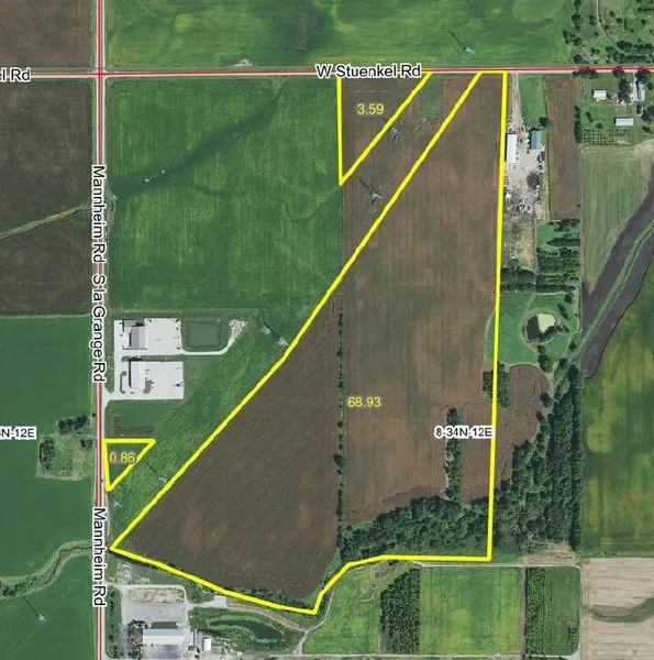 This 73+ acre farm with A-1 zoning contains 67 tillable acres with a Crop Productivity Index of 117 and a total of 310 feet of combined road frontage along Stuenkel Rd and Highway 45. The property is within 7.5 miles of the I-57/W Stuenkel Interchange and the I-80/Route 45 Interchange, and within 20 miles of the I-294 Interchange. A strip of land owned by Commonwealth Edison creates a division within the property, delineating two smaller parcels. These parcels encompass a .86-acre plot accessible via Hwy 45 and a 3.59-acre parcel accessible from Stuenkel Road. Positioned among neighboring properties with industrial zoning creates the possibility of industrial development. This proximity presents potential avenues for expansion or diversification of land use, catering to a diverse array of investment objectives. Embrace the opportunity to acquire this versatile parcel, offering a harmonious blend of agricultural richness and development potential.