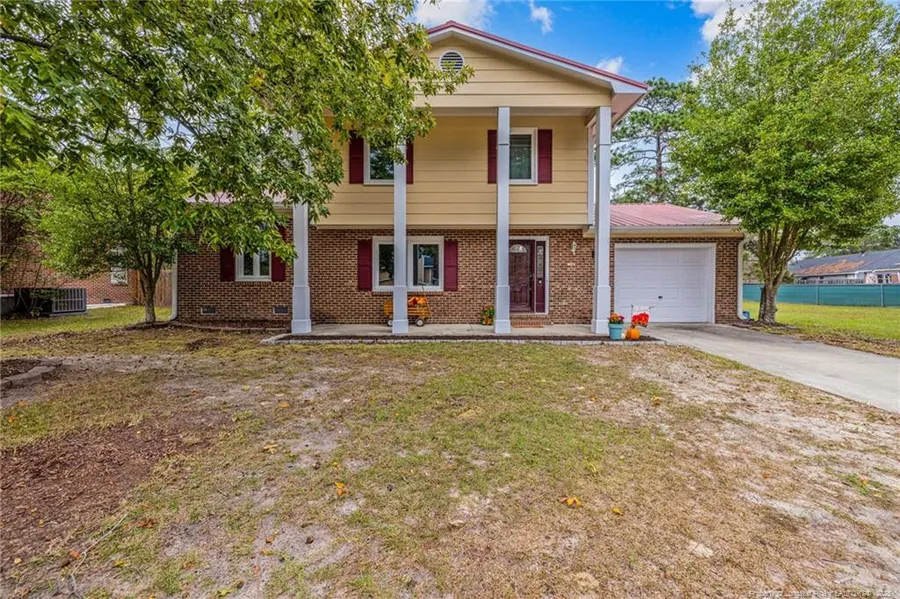 Welcome Home!A large front porch leads you into a welcoming foyer, which opens to a formal living room and formal dining room perfect for entertaining. The kitchen features, New range 12/25, quartz countertops, an island, stainless steel appliances, and a breakfast area with bay window. Just off the kitchen, you'll find a den with a cozy fireplace and a convenient half bath/laundry room. Upstairs, the primary bedroom includes an updated en-suite bathroom, along with two additional guest bedrooms and another updated full bath. This home has no carpet throughout. New Laminate flooring was just installed upstairs. easy to maintain and allergy-friendly! Outside, enjoy a large, fenced backyard with a patio and storage shed. Metal roof!Conveniently located close to shopping, restaurants, and Fort Bragg, this home checks all the boxes!