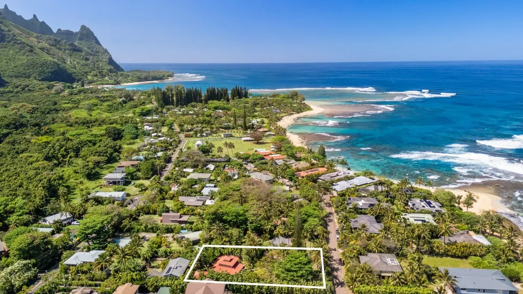 Haena is a special place on the Island of Kauai. It is the yesteryear of time, pace, relationships, and lifestyle. This property emphasizes these characteristics in every way. Hawaiian style, all the way. You are about 600' from the beach access. The main, 2-story/2bd/2ba, home is constructed of aged wood with a bright red corregated metal roof. The wooden interior of the home is accented with colorful patterns of tile, an abundance of shuttered windows and a very large screened lanai. No need for heaters or air conditioners here :-). The spacious kitchen has a beautiful wooden slab top island, natural wood cabinets, and space that can be used as a second bedroom or an additional formal dining area. The spacious master bedroom is singularly located on the 2nd floor. There is an attached spacious lanai for outdoor dining and socializing. The 596 sq ft guesthouse/ADU (check with County) is comprised of lving area and enclosed lanai, with a 2 burner gas stove, ref. and double sink. The bedroom is located on the second floor and accessable by way of spiral staircase or external staircase. While you are just a few steps from the beach you are also just minutes from world famous Hanalei town and Princeville. Both are locations of numerous restaurants and services. Hanalei Bay is also a world-famous waterperson paradise. Google Hanalei Bay for an amazing visual experience. You are also just a hiker's dream from the amazing Napali Coast. This property has not been on the market for 20 years. It is a must-see for the Haena-minded buyer. NEW YORK TIMES LINK TO KAUAI :