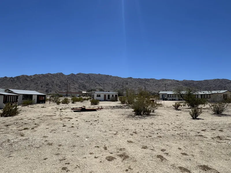 This historical property was once owned by legendary gold miner and town founder Philip Sullivan, this unique 5-dwelling ranch sits on 2 scenic acres, directly across from Joshua Tree National Park. Brimming with vintage charm and incredible views, this historic gem offers endless possibilities. The main permitted duplex is partially furnished and features two updated units-each with modernized plumbing, electric, HVAC, septic, kitchen, bath, and private patios-connected by a shared workshop/laundry room. Three additional historic cottages: The Adobe Bar & Entertainment Room - A spacious stone studio with vintage windows, original redwood beams, a rustic bar, and dual his-and-hers baths with solar-heated showers. The Writer's Den - A cozy 2-room retreat with a dining space, vintage-style windows, insulated walls, and original redwood cabinetry. 1-Bedroom Cottage - Features a functional kitchen, working plumbing, stone masonry, vintage windows, and a charming covered front porch. Rounding out the property is a vintage adobe garage-workshop with rustic double doors, functional windows, and a large adobe-cement patio. Zoned Service Commercial (CS)/Residential N/C, this rare find allows for multiple uses-bar, restaurant, campground, hotel, event space, or a private retreat. Just 1 mile from downtown 29 Palms and 3 miles from the Joshua Tree National Park entrance, this is a one-of-a-kind opportunity. Being sold As-Is. Bring all offers!