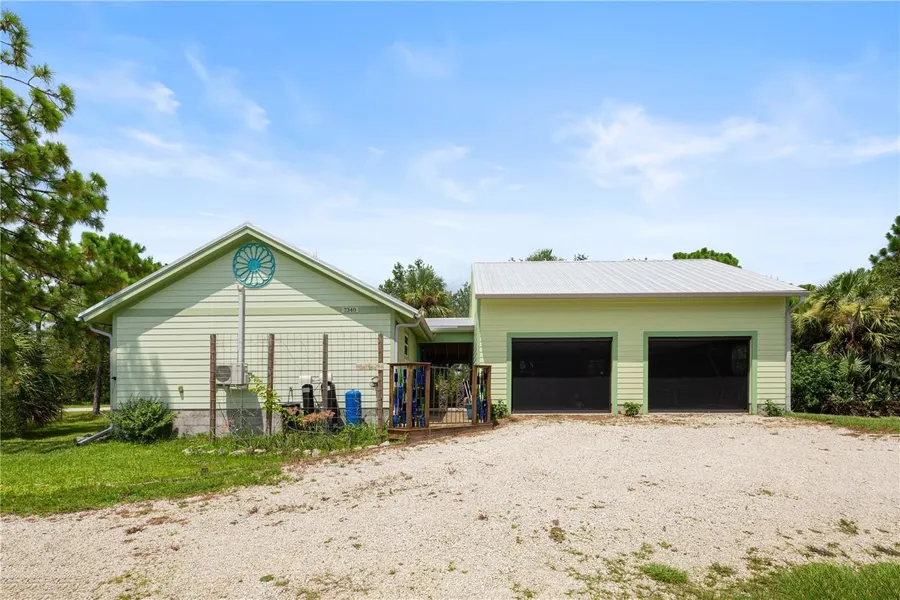 RARE OPPORTUNITY 1 Bedroom, 1 Bathroom, 2 Car Detached Garage with an upstairs 3 Bedroom, 1 Bathroom and kitchenette in-law suite, situated on a corner DOUBLE lot in Englewood. NO HOA FEES! CLICK ON THE VIRTUAL TOUR LINK 1 FOR THE VIDEO AND VIRTUAL LINK 2 FOR THE 3D TOUR. Welcome to this beautifully designed studio home, where modern style meets practical comfort. The open floor plan seamlessly blends living and dining spaces, highlighted by a sleek kitchen featuring granite countertops, stainless steel appliances, a tiled backsplash, and stylish open shelving—perfect for effortless entertaining and everyday living. The sleeping area includes a floating bed, two wardrobe closets and a matching dresser for ample storage. A spacious bathroom offers a luxurious walk-in shower with dual shower heads and two linen closets for added convenience. Step outside to a private oasis—enjoy a covered patio overlooking a wooded backdrop, a heated above-ground spa, and a breezeway that leads to a sun deck, an outdoor shower, and a separate entrance to the garage living space. Above the garage, a finished guest suite offers endless flexibility: host family, welcome visiting friends, or explore rental income opportunities. Situated on a rare double lot, this property is packed with potential—including an RV pad with full water and electric hookups. Whether you're looking for a full-time residence, a weekend escape, or a versatile investment, this unique property delivers it all. METAL ROOF - HURRICANE IMPACT WINDOWS & DOORS. Conveniently located close to 776 and US-41 providing easy access to shops at Price Crossing, Cocoplum Shopping Center, and the Port Charlotte mall, where you can choose from a variety of restaurants, grocery stores, retail shops, and a short car ride to award-winning beaches, making this an ideal location!! Schedule your showing TODAY!