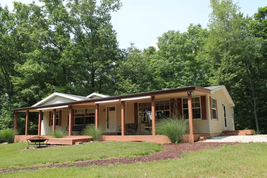 Brown Park Lake, approximately 9 acre quiet, private lake with a small number of homes makes every day a vacation day. Commute to I-65/use for weekends. 2003 manufactured home in "like-new" condition with 3 BR's, 2 BA's, kitchen with built-in desk, large breakfast bar, ample cabinets & pantry. Master suite. Roof is 4 years old. Covered back porch looks out across the water. Gentle path down to your private dock. No gas motors allowed on lake so water is clean/well stocked. Nice pet fence. Last house on a dead-end road.