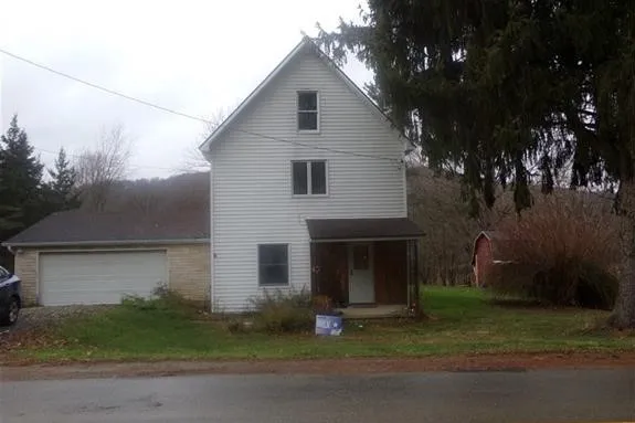A MUST SEE. Two Story 3 Bedroom Country home with attached 2 car garage, featuring a Living room-dining combo, eat in breakfast nook looking out the sliding glass doors to a partially wooded lot. Upstairs there are three quaint and cozy bedrooms with a full bath. The attic is a bonus room and ready for remodel. The property has several fruit and nut trees and hardwoods and a chicken coop for the homesteader. The back lot features, hiking trails, berries, and hunting, creek access for fishing or kayaking or just relaxing and wading in total privacy. The water system is supplied by an artesian well and new water presser tank installed. Heating system is gas heated water baseboard. Basement is dry and clean for storage. This property would be an excellent starter home or country retreat for the seasonal camper or hunter. Have a plan.