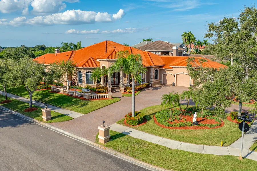 Fabulous golf course home in the prestigious country club community, the Bayou Club! Uniquely designed, Campagna-built home with four bedrooms and three full baths. Note: bedroom four is currently being used as a home office. This amazing home has an oversized three-car garage. This golf course home overlooks the 6th green of the championship, Fazio-designed Bayou Club golf course. A distinctly designed, one-story residence with 4,326 square feet of living area and an extra-large covered Lanai-patio and pool/spa area with a unique, waterfall feature. This home also has a completely updated media room you'll love. Located on a unique corner lot with great curb appeal, mature landscaping and a circular paver driveway. Open kitchen with a dinette area opening to the family room with sunken wet bar for easy entertaining. A great opportunity, in the Bayou Club!