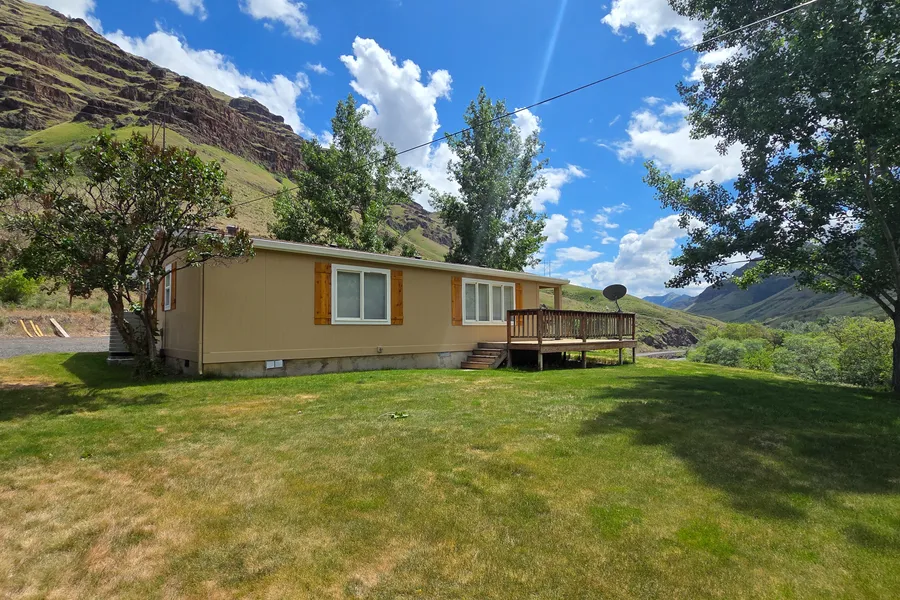 Immerse yourself in the slower way of life near Imnaha. 21± acres with fishing and plentiful recreational opportunities nearby. The house sits on a hill to take advantage of the incredible views of the Imnaha River and canyon bluffs, while the property boundary extends down to the river. Peaceful and tranquil setting. Take advantage of the warmer climate that the canyon provides, meaning less snow and a longer growing season. Yard area has 6’ animal-fencing and a power driveway gate, and there are mature trees such as Walnut, apricot, and Asian pear. House has 2 bedrooms, 2 bathrooms, an extra storage room, deck and attached carport. There is also a detached garage with one insulated garage bay and a finished heated/cooled bonus space that is currently used as a craft room. The shop is impressive with double-layer galvanized steel measuring 36’ x 48’ for a total of 1,728 sq.ft. Features include a 12’x14’ garage door, 10” thick walls and 12” thick ceiling, which are fully-insulated, and two sources of heat: a woodstove and Laser oil heater. Full-service RV hookup with 30-amp electric plug and sewer dump. House is on a well and water softener system and is wired for generator back-up. The septic system was replaced about 8 years ago, roof replaced about 6 years ago, furnace and heat pump are about 5 years old, and the house is freshly painted. Shared irrigation system with the neighbor, with some water rights from the Imnaha River. Pump house at the river and irrigation handline included. Property is about a ten minute drive from the town of Imnaha or a one hour drive from Enterprise, with paved access the entire way
