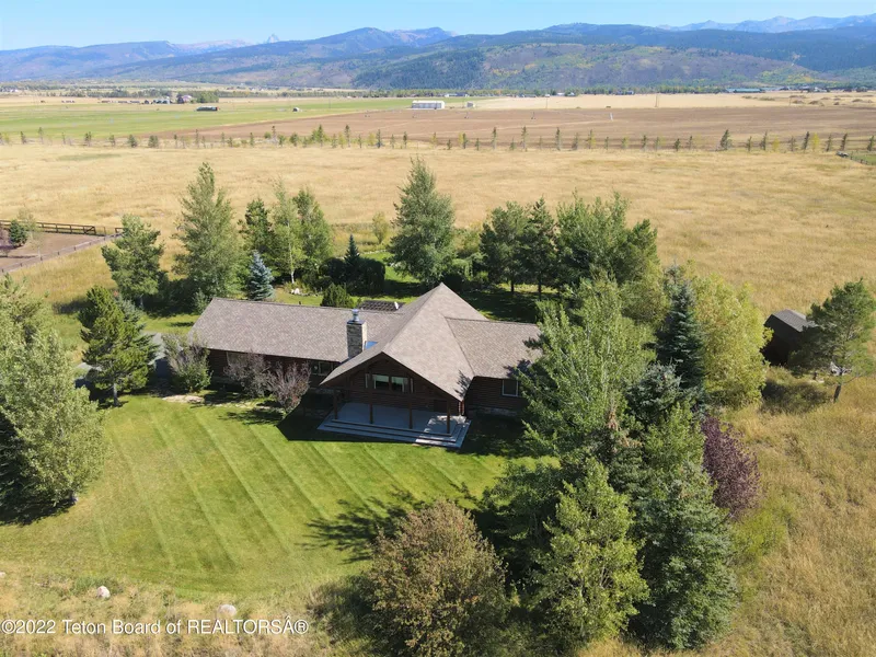 Beautiful single-story log home on nearly 3 irrigated acres nestled in the coveted Aspen Lake Subdivision. Spacious 3 bedroom, 2 bath home with open floor plan, cathedral ceilings, sunlit kitchen, and private primary suite. Large mature trees and landscaped yard and berms provide gardens of privacy and seclusion. Tastefully remodeled in recent years bringing modern charm to the western style. Large east and west-facing decks for viewing sunrises and sunsets and providing summer shade on those savory summer days. Horses and short-term rentals are allowed. CC&Rs allow a guest house on this parcel. House is immaculate, and ready for it's new owners. Bring your buyers!