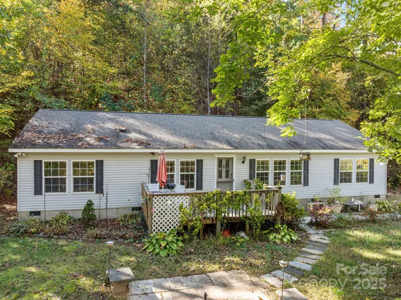 This is an incredible opportunity for any buyer! Located on a breathtaking drive down Pisgah Highway, rests this nearly 5 acre parcel. There is a huge garage shop at the base of the driveway that has totally level access to it. Up a slight climb the primary home sight features level usable yard space and a 3 bed 2 bath home. At the switchback in the finished driveway there is what appears to be an old logging road connection, right there is a level, potential build site and possibly more further up. The home itself is a 1620 square feet modular home with a 2001 build. It needs some TLC but is in overall good condition and was well maintained. Could be move in ready, mortgage worthy, no known major issues. Features a large primary suite and two well appointed bedrooms. It has a nice front deck and a covered carport area out back. Across Davis Chapel Road between 151 runs Stony Fork creek, it can be heard at the shop and throughout the primary build site. This property was not affected be Helene and is not in a flood plain.