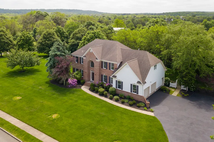 North facing. Bright and spacious both inside and out, this Skillman home on a large corner lot, is in a sidewalk neighborhood of refined homes close to schools and shopping. A dining room that easily caters to large gatherings and the roomy living area are up front, while the back of the home includes the cheerful kitchen and the family room with skylights and a fireplace. Make good use of the home office, across from the powder room, whether for work from home or overnight guests. The main bedroom suite upstairs incorporates a private sitting area, walk-in closet and en-suite bath. With a built-in window seat and bookshelves, this relaxing retreat is just the spot for a morning coffee or some quiet reading. Handsome hardwood floors are found in three more well-proportioned bedrooms alongside the hall bathroom. Beautifully designed grounds are delightfully landscaped with boxwood, Hosta, rhododendron, and hydrangea plantings and include a paver patio with woodsy views. Top rated Montgomery Township school district. Close to downtown Princeton.