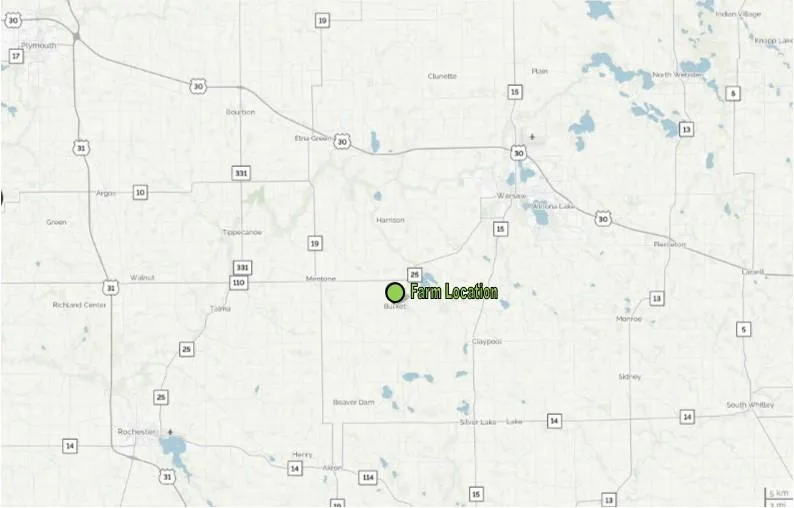 74.3 Acres of cropland and woods located on the NE corner of Burket, IN. Seward Township, Kosciusko County.