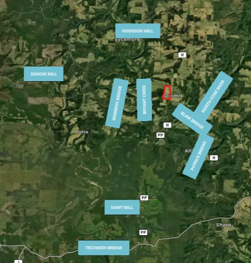 Water enthusiast paradise located in Southern Missouri perfectly situated between the North Fork River and Bryant Creek (River). This property is a nature lover's dream come true. Just a couple of miles down the dead end road puts you at secluded spot known to very few people for a great day spent fishing or swimming, picnicking or a family BBQ. Plus, you are also less than 4 miles to Blair Bridge and less than 3 miles to Patrick Bridge accesses on the North Fork River. Or go 3 miles to Warrens Bridge, and less than 10 miles to Hodgson Mill Bridge on Bryant Creek, there are abundant opportunities for recreation in the crystal-clear waters. Not to mention you are surrounded by thousands of acres of national forests, including Mark Twain and Caney Mountain Refuge, outdoor enthusiasts will find endless opportunities for exploration and adventure. The area is also home to historic mills and refreshing natural springs, adding to the charm and allure of the region. Nestled on almost 75 acres of pristine land in the Heart of the Ozarks. Build your dream home on the hill that offers a spectacular view of the Ozark Mountains. Plenty of room for a self-sufficient farm, just add the animals of your choice, plant a garden, and stock the pond with fish, so many possibilities. This property boasts two sections of prime pasture, making it a perfect opportunity for anyone seeking a peaceful rural retreat. The property features three deep ponds that have never run dry, providing ample water supply for irrigation or livestock. One of the ponds is spring-fed, ensuring a constant flow of fresh water year-round. Additionally, the property includes a wet-weather creek, adding to the natural beauty and charm of the landscape. The perimeter is secured by a newer 5-strand barbed wire fence with steel pipe corner posts, offering both security and durability. Don't miss out on this incredible opportunity to own a piece of paradise in the heart of Missouri.