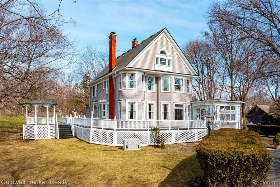 Historic Victorian Home within walking distance to downtown Northville sits on a beautiful 1.83-acre parcel. The owners have lovingly owned and maintained this home for 46 years. It was built for the superintendent of the Northville Fish Hatchery business and is the last remaining structure from that time. The impressive moldings, the original all-wood doors, the custom windows, the 3 fireplaces, and the stunning staircase are just a few features that make this home so unique. This spacious home is almost 3000 sq ft with an additional 200 sq ft in the welcoming sunroom. The unfinished 3rd floor would make a great 5th bedroom, office or playroom. The curb appeal is stunning and features a wrap-around porch and gazebo to view the lovely yard and natural spring-fed pond. Convenient circle drive makes entering and exiting the property a breeze. The large barn has electricity and a loft area for extra storage space. Well and pump by pond for lawn watering. This home and lot are truly one of a kind in the desirable City of Northville.