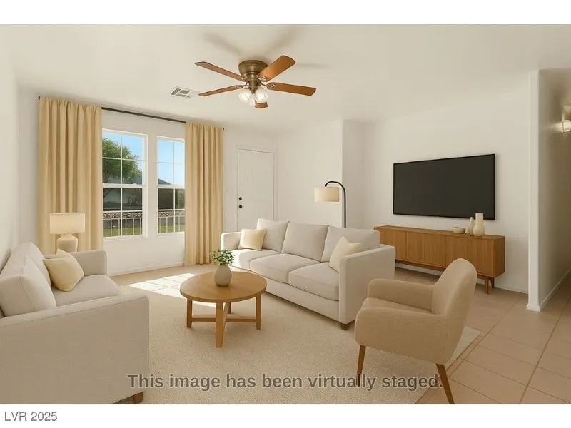 Spacious 3-bedroom, 2-bath single-story home featuring an open, airy layout. The home offers a generous living area, separate dining space, and a functional kitchen with a cozy breakfast nook. The primary suite includes a walk-in closet and private bath. Recently updated with a brand new AC system, offering comfort, energy efficiency, and peace of mind. Located in the desirable South Valley Ranch community with low HOA fees of just $20/month and a neighborhood park. Enjoy close proximity to Wetlands Park, Cowabunga Bay, Galleria Mall, Cadence, and the Boulder Highway Reimagine Project—plus convenient access to shopping, dining, and more!