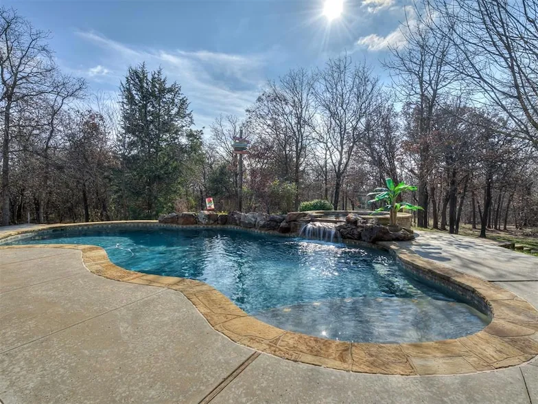 Welcome to your personal oasis! This place has it ALL! Sitting on over 4.3 wooded acres this home feels very private and secluded, yet it's close to I-35 and all the amenities Edmond has to offer. There are 4 bedrooms, all of which are connected to a bathroom, there's also a separate office, a formal dining room, an upstairs bonus room with a full bathroom connected and even an additional separate space that could be used as a hobby room. There is a beautiful view outside every window in the house. The living room has a vaulted ceiling with wood beam accents and floor to ceiling windows showcasing the absolutely amazing backyard! Under the enormous covered back patio is a gorgeous stone fireplace. There is an outdoor kitchen and dining space next to the picture-perfect pool and spa which overlooks the beautiful, wooded backyard. The oversized three car garage has insulated garage doors and a storm shelter in the floor. This property is an absolute MUST SEE, located in the serene gated Tanglevine neighborhood.