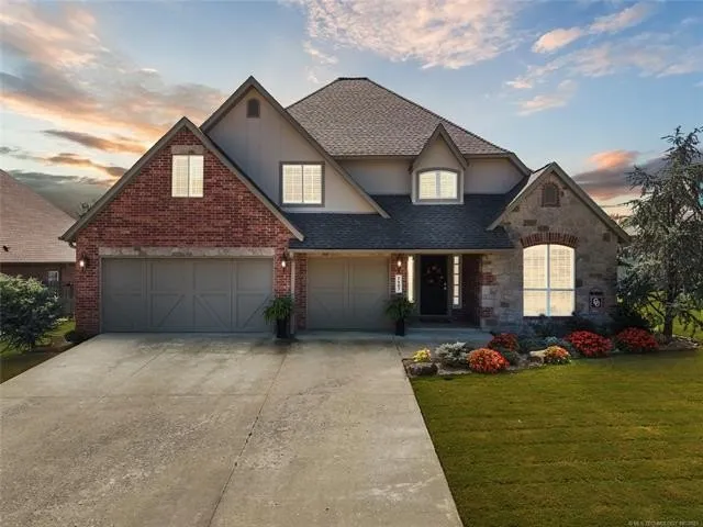 Upon entering, this house exudes the warm charming feel of home. It is located in Broken Arrow School District and walking distance to grade school and middle school. The home features 4 bedrooms and 3 full bathrooms, along with a 3-car garage, study, formal dining room, large game room and a flex room. It showcases beautiful wood floors and plantation shutters throughout, is equipped with a whole-home generator, a roof replacement in 2020, and HVAC systems that were updated in 2017 for the downstairs and 2023 for the upstairs. The water heater was replaced in 2016, and the interior and exterior have been freshly painted, with new garage doors added in 2020 plus a central vacuum system throughout. The spacious bedrooms come with walk-in closets and crown molding. The kitchen features a walk-in pantry, new double ovens, a Bosch dishwasher, breakfast bar, and breakfast nook that opens to the living room which has a cozy gas fireplace. The master bathroom is generously sized complete with double sinks, a shower, and a whirlpool tub. This exceptional floor plan includes the master bedroom, one bedroom and two full bathrooms located downstairs, while the second level includes