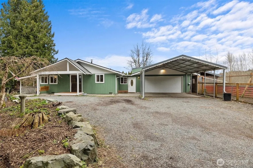 1 Acre Farm w/ Fully Renovated Home. ADU, Shop, Garage, Studio, Carport, Treehouse, Greenhouse & Garden. This property is a unicorn it has everything! 100k+ Renovation includes all new electrical, flooring, appliances, exterior painted, etc. Practically a new house. New Roof 2025. Ask for UPDATES & Features List. Too many fruit trees & plants to name (ask for list!). Home has a large great room, awesome for hosting and cozying up by the wood stove. Kitchen has custom island, quartz counters & soft close cabinets. Established farm w/ spaces for chickens, etc. Large tiny home (the ADU) is 336 sqft, built in 2020, w/ 200 amp. RV hookup (30 amp). Shop space for hobbies/toys. Close to Hwy 9 & I-5, while tucked away in your own PNW Oasis.