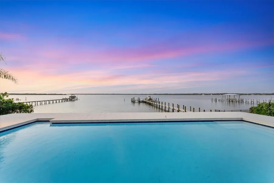 Under contract-accepting backup offers. One or more photo(s) has been virtually staged. ~ COME SEE THIS ESTATE HOME WITH SWEEPING VIEWS OF MANATEE RIVER AND THE SKYWAY BRIDGE ~ This never before listed residence is situated on a 1/2 Acre of land in NW Bradenton offering you 100' of direct water frontage. The water enthusiast will cherish this rare opportunity to secure a home that has been unaffected by hurricanes and storm surges in a non-flood X zone. At 13 feet this property is among the highest elevation along the Manatee River providing you with peace of mind. Meander out onto your dock to fish, sit a spell and capture the gorgeous sunsets at the mouth of the Manatee River. The night time views of the Skyway Bridge all lit up are simply spectacular. Come live the ultimate coastal lifestyle in this spacious 6 bedroom, 4.5 bath, 4529 sf home that's an easy stroll away from the famous DeSoto National Monument. An enormous 31x21 Media Room with skylights has room to spare so you can customize and transform this area for your workouts, billiards table, theatre center, mother-in-law living quarters and more. Once family and friends stay in guest studio suite overlooking the river with its own private entrance they'll never leave! Cool off from the hotter summer days and take a refreshing dip in your swimming pool as you relax in your chaise lounges in the privacy of your backyard watching the endless parade of boaters and dolphins. This home represents a personal sanctuary with a warm inviting floor-plan featuring spacious rooms throughout. The Primary Suite and main living areas are all complemented by waterfront views and natural daylight adding to the relaxing ambiance. A real wood burning fireplace can be found in the formal living room that opens to the casual dining area with fantastic views of the Westerly sunsets. This residence has incredible potential for you to customize it to your personal tastes. This location simply can't be improved upon. Host family get togethers as your guests lounge poolside in this private oasis. Four 4 ton Trane units service this home averaging $400/month. Electric hurricane roll down shutters are activated by the push of a button for hurricane rated sliding glass doors and large windows along with accordion shutters for added protection. This property is truly unique with its three-tiered retaining walls for added protection from the elements. The roof was installed in 2018. The water heater is brand new. The interior has been freshly painted and new carpeting has been installed. An irrigation system is in place as well. A newer 200' x 4' dock with water and a 35' x 20' terminal built in 2024 will make for great outdoor adventures. Delight your guests with endless hours of kayaking, fishing, crabbing and boating. Non-deed restricted with no HOA or CDD fees. Seize this opportunity to make this home yours... LOCATION REALLY IS EVERYTHING! Be sure to view the Virtual Tour.