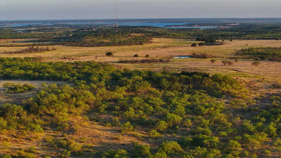 Buckaroo Butte Ranch offers an exceptional development landscape in the hills between Hubbard Creek Lake and the bustling small town of Breckenridge, Texas. This expansive property boasts panoramic views, including the town's water tower and the iconic green "B" atop the Clear Fork Bank. The buttes lend to the ranch's unique character, featuring dramatic elevation changes and stunning build sites. Historically leased for cattle grazing, the land is well-equipped with one trap and a quality set of centrally located pipe pens conveniently situated along the cross fence that divides the two pastures. A well-maintained rock road connects the pens and pastures to the paved frontage, ensuring easy access. Open grass fields within the heavily wooded hills contain ample stock tanks on the edges, supporting agricultural activities and drawing in the local wildlife. Buckaroo Butte Ranch is a triple threat with outstanding grazing, hunting, and development opportunities. Broker's Comments ~ "The more I visit Buckaroo Butte Ranch, the more I like it. The hunting opportunities are preserved within the elevation, while the ability to develop is undeniable with almost a mile of FM 3099 and utilities runnning down the entire northern boundary." ~ Boone C. -- IMPROVEMENTS & STRUCTURES --