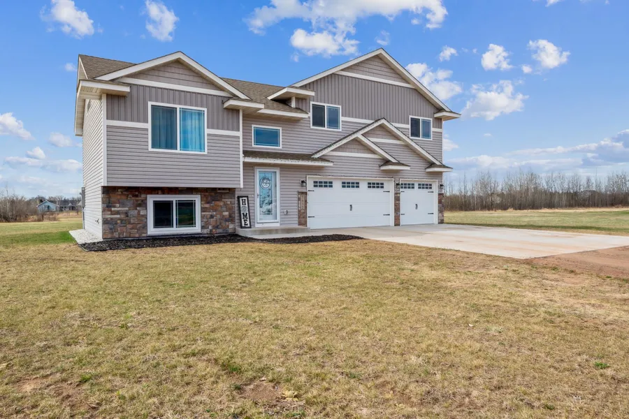 This is a beautiful 2023 built home on acreage that has 3 bedrooms/2 baths on one level. The Primary suite has a walk-in closet, bathroom with a large walk-in shower, and dual sinks. The kitchen features stainless Steel appliances, a center island, and a window above the sink looking out over the large back yard. The home has a 3-car garage that is insulated, sheet rocked, and the connections are ready to hook-up a furnace. Lower level is unfinished and ready for you to finish to suite your needs. This home has a large 2.5-acre lot and is in an area that qualifies for a zero down Rural Development loan. Local food & shopping amenities in Pine City, close to Hwy 35 for easy commuting, neighborhood parks, and lakes nearby. Only moving because of job relocation.