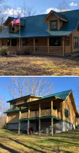 Dreamed of living in a log cabin? We have it! This beautiful log cabin on approx 2 acres has 4 bedrooms and 2 full baths! Exposed beams and high ceilings are the highlight of this home! Warm and cozy feeling as you walk in! Carpet and hardwood flooring throughout! All appliances stay including range, refrigerator, microwave, dishwasher, washer, and dryer. Master bedroom and bath located on main level with a huge walk-in shower! Double pane windows. Central heat and air. City water and septic system. Shared driveway.