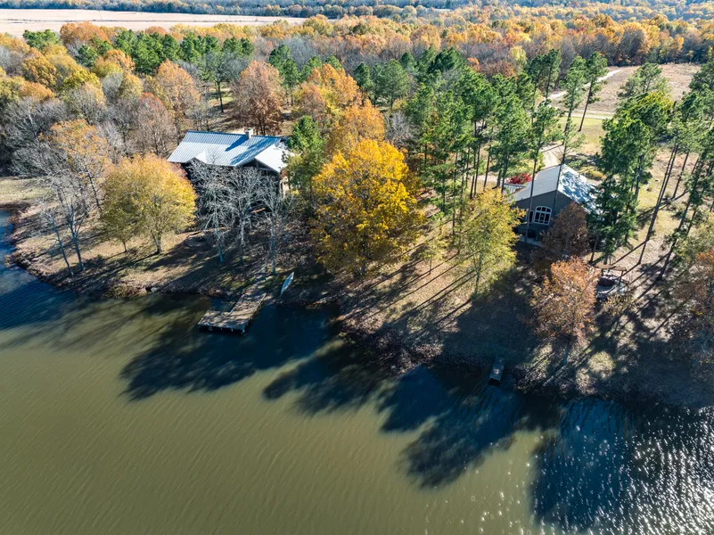 A perfect blend of natural beauty and opportunity combines on this sprawling 745.78 acre property known as Russell's Cuthand Creek Ranch, in the northernmost part of the Piney Woods of East Texas. Located in Clarksville, the county seat of Red River County, this incredible property features a diverse landscape of timber, pastureland, wetlands, multiple ponds, creek & a lake with 2 piers. Encompassing 360 acres of wetlands within the Wetland Reserve Program, this land offers an ideal habitat for exotic game, hybrid deer, buffalo, and more. Trails wind through the wetlands for recreation & ease of maintenance. Enhancing the appeal of this property is an exceptional rustic two story stone & cedar lodge overlooking the well-stocked lake, with approximately 3820 sq. ft., 4 bedrooms, 2.5 baths, an expansive living area with vaulted beamed wood ceiling and walls and soaring stone fireplace. Living area opens to upstairs loft, dining & spacious kitchen with island. Enjoy upper level with 2nd living area w/ fireplace plus 2 bdrms, bath, bonus room/nursery & loft (sleeps 4). In addition, there is a single family custom built home with approximately 1750 sq. ft., 1 bedroom, 1 bath (with tub & shower sauna), with open living(vaulted ceiling)/dining/kitchen (complete with island, pantry, & built-in Thermador refrigerator/freezer plus wine refrigerator) & office. A combo laundry & exercise room plus screened porch & picturesque tree shaded lakeside patio complete this home. The 1,200 sq. ft. insulated shop, complete with a 300 sq. ft. porch, two overhead doors, concrete flooring, kitchen, bath, storage, and potential living space— is ideal for customization to suit your needs. Additionally, equestrian enthusiasts will appreciate the barn, with a tack room & five stalls. A covered shed provides storage for farm & ranch equipment. This exceptional property offers a unique opportunity to embrace a lifestyle surrounded by nature, providing peace, privacy and endless possibilities!