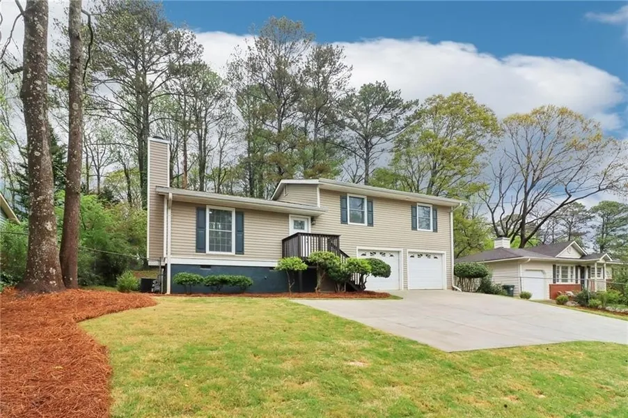 Spacious & Updated Split-Level Near Marietta Square! Lovingly maintained home with brand-new driveway (fits 4 cars), fresh sod, and oversized 2-car garage with storage. Inside, a vaulted living room features a striking floor-to-ceiling stone fireplace. Upstairs, enjoy a bright dining room with deck access and a pass-through bar to the updated kitchen-complete with new stainless appliances, tile backsplash, and white cabinetry. Primary suite includes walk-in closet and en-suite bath; two secondary bedrooms share an updated hall bath. A versatile lower-level room makes a great guest suite, office, or playroom, with a nearby full laundry room. Outdoor living shines with an upstairs deck, covered patio, and fully fenced backyard backing to mature trees for privacy. Recent upgrades: new carpet, double filtration system. Conveniently located minutes from Marietta Square, parks, and shopping-this home blends comfort, style, and space. Don't miss it!