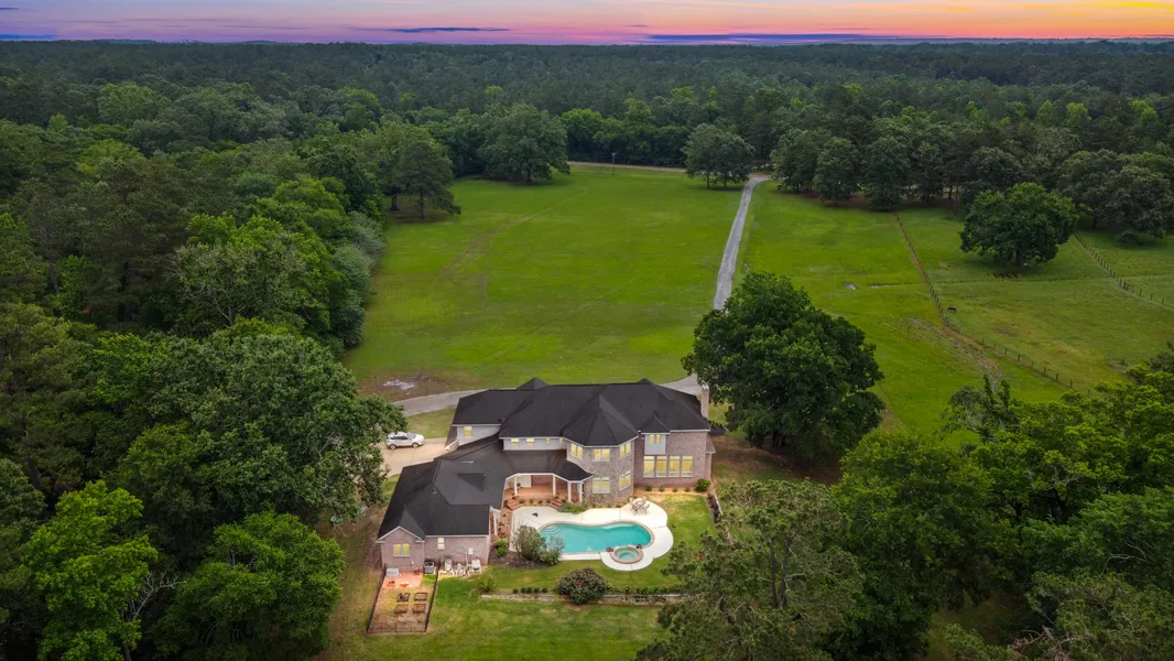 Grand estate in the oldest town in Texas!! Fully custom home on 14.34 acres boasts 5 fireplaces (two double sided), kitchen with large center island, attached guest quarters with separate entrance and saltwater swimming pool and spa! The primary suite is your very own private retreat! It is so luxurious with fireplace, wet bar and sitting area. 6 total bedrooms including guest quarters and 4 full baths and 2 half baths. Additionally multiple living spaces, office and exercise room. Covered porch and patio to enjoy all the views. Great storage. 3 car attached garage.