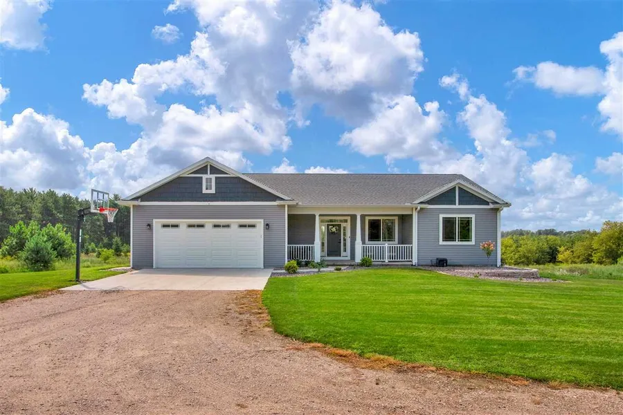 Fabulous 2017 WALKOUT RANCH with 4 bedrooms, 3 full baths plus a HEATED 40X30 OUTBUILDINGsituated on 3.25 picturesque rolling acres. This stunning home features modern white woodwork and premium finishes throughout. Enjoy beautiful outdoor views from the 23x7 covered concrete porch. Custom kitchen with hardwood cabinets, pullouts, walk-in pantry, granite counter tops, massive island with seating, beverage station, commercial size sink and stainless appliances. Open concept, 9 ceilings and easy sliding door access to the 2-story deck that overlooks enormous patio space below. Spacious master suite features a walk-in closet with custom organizers and a large bath. Walk or roll into the massive shower with glass door, custom tiled walls and rain shower head. Bath vanity space consists of two vessel sinks and a counter make-up station. Main floor finishing also includes two bedrooms, full bath, laundry and mudroom. Lower level is loaded with natural light from the walk-out patio door and numerous window sets. Expansive finishing includes a 17x20 family room, 15x17 game room, 4th bedroom, full bath and plenty of unfinished space for storage. Lower level has in-floor heat rough-in. Stunning outdoor living space features stamped concrete, patio pavers, tiered edge work, rocks and outdoor accent lights plus a sand area for games. Detached 30x40 building is heated & finished. This perfect workshop & storage space includes a concrete floor and 16ft OH door with power opener. 1000 gal LP & Water softener are owned. Beautiful country setting located approximately 4 miles east of Stevens Point.