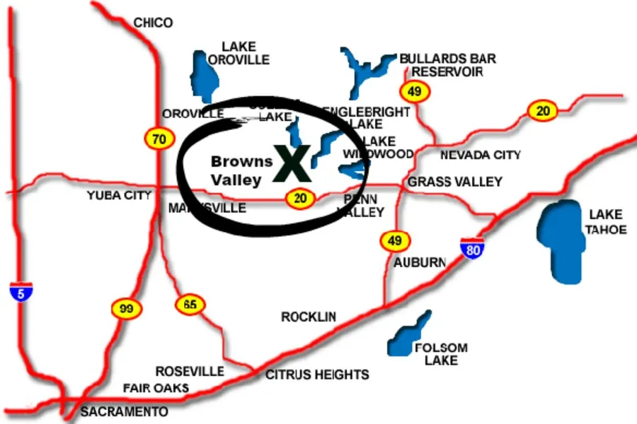 Driving Directions: From Yuba City take Hwy 20 Browns Valley Rd east. Turn left/north on Marysville Rd. Turn right on Dolan Harding Rd. Turn right on Redhill Rd. Turn right on Redhill Way. The parcel is on the left. It is after, and adjacent to, the home at 7467 and before the home at 7501 Redhill Way. It is across the street from 7512. Take the aerial map.
